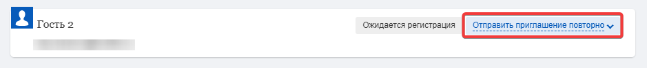 Если гость не прошел регистрацию по приглашению, можно отправить его повторно.