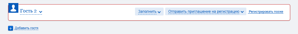 В форме регистрации появится блок для заполнения данных второго гостя.