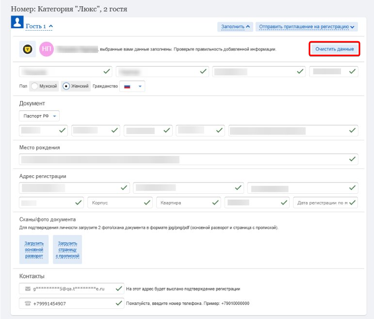 При необходимости гость сможет очистить все персональные данные после автозаполнения и заполнить их снова вручную или автоматически с помощью T-ID.