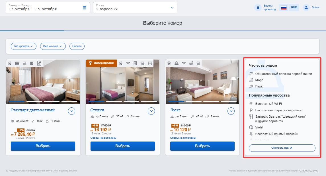 Баннер в модуле бронирования гости увидят на шаге выбора номера.