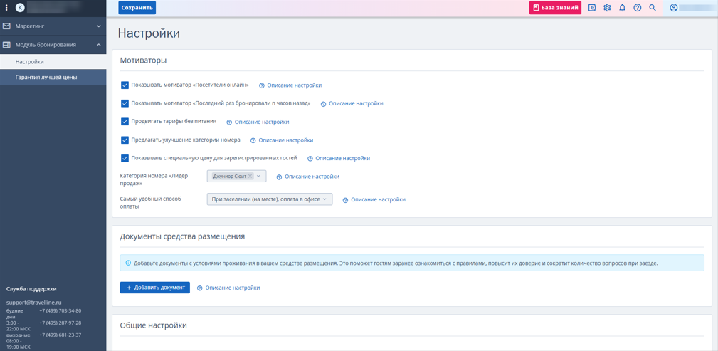 В личном кабинете TravelLine вы можете создать пользователя с правами маркетолога. Такой пользователь имеет доступ в раздел «Маркетинг», аналитику TravelLine и настройки мотиваторов для модуля бронирования.