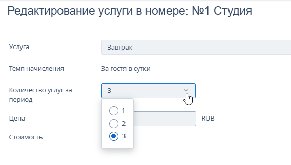5. В окне редактирования услуги вы можете изменить количество услуг за период.