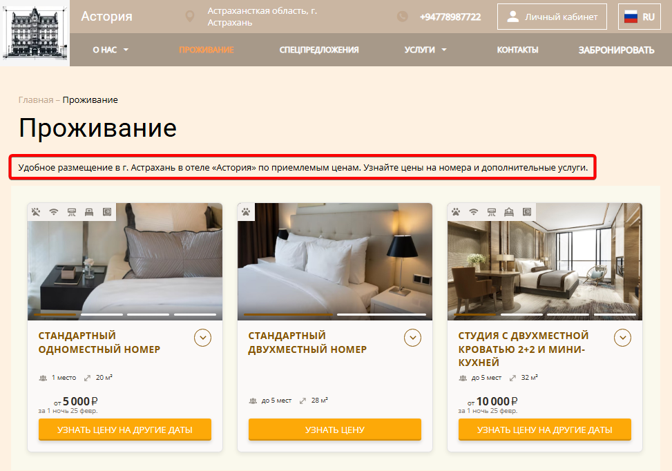 Добавьте на страницу тексты с местоположением, маршрутом проезда. Это поможет гостю быстрее найти ваше средство размещения.