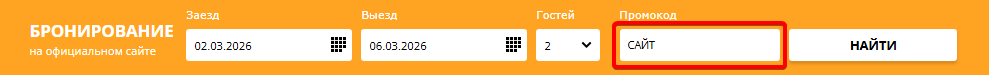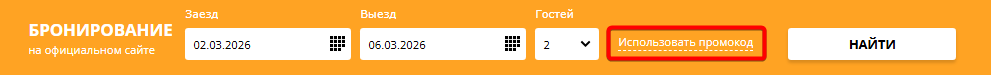 На сайте гость кликает на ссылку «Использовать промокод» и получает доступ к бронированию с промокодом.