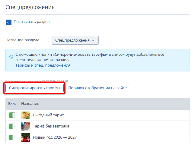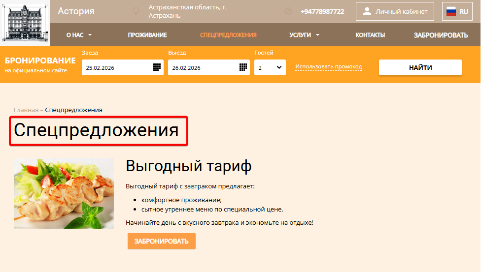 Специальные предложения и акции, созданные в разделе «Управление номерами» → «Тарифы», легко добавить в раздел «Спецпредложения» на сайт TL: Express.