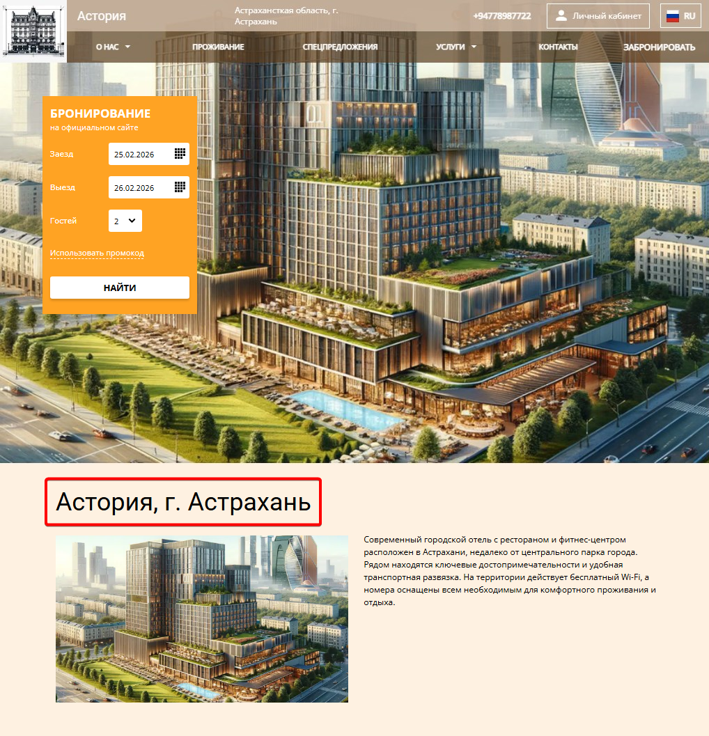 Этот текст отображается, когда гость переходит к бронированию с любой страницы сайта, кроме раздела «Проживание». Для страницы «Проживание» используется отдельный текст, который задается в соответствующем разделе.