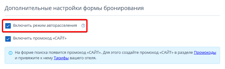 2. Вы можете выбрать автоматический режим расселения гостей в модуле бронирования. По умолчанию работает ручной режим расселения.