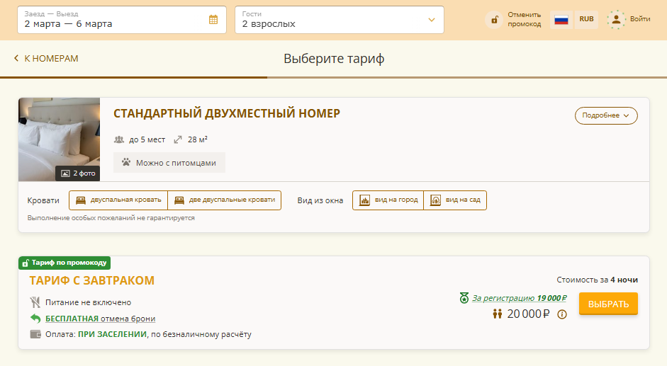 После выбора дат гость увидит закрытое спецпредложение только для гостей сайта.