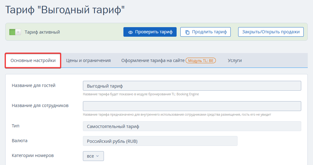 Обратите внимание. Чтобы тариф был доступен для бронирования в каналах продаж: