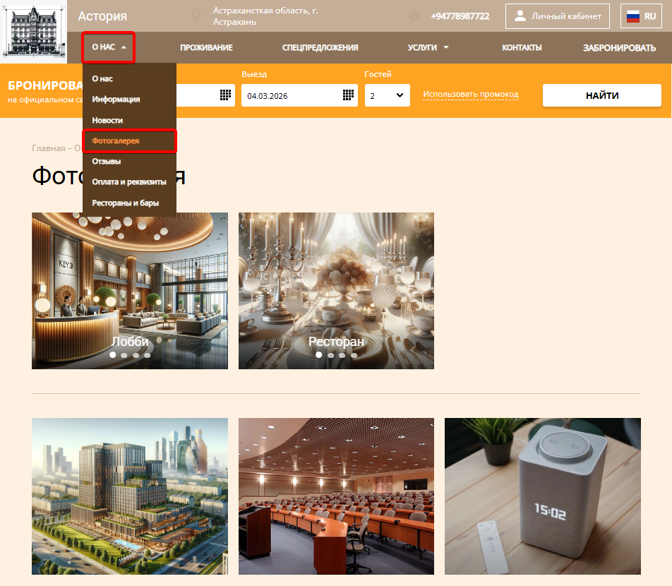 Фотографии появятся на сайте и будут доступны гостям в разделе «О нас/ Об отеле».