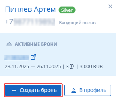 Интеграция с телефонией «Телфин» позволяет автоматически определять гостя при входящем звонке.