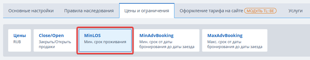 4. Убедитесь, что во всех тарифах для сайта во всех категориях на нужные даты установлено ограничение MinLOS, в том числе в тарифах с промокодами.