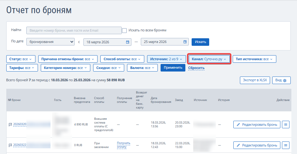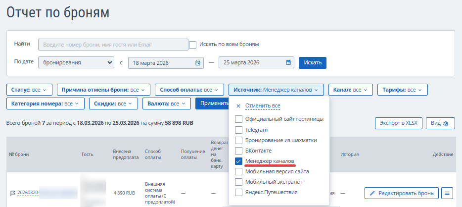 2. В фильтре «Источник» выберите «Менеджер каналов».
