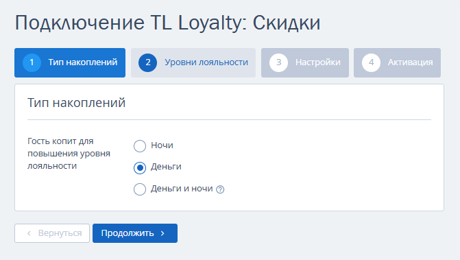 Накопления начисляются через 5 дней после выезда гостя в 00:00 по времени средства размещения. После того, как накопится определенное количество потраченных денег или забронированных ночей, гостю автоматически выдается новый уровень скидки. Эту скидку гость сможет использовать в следующее посещение гостиницы.