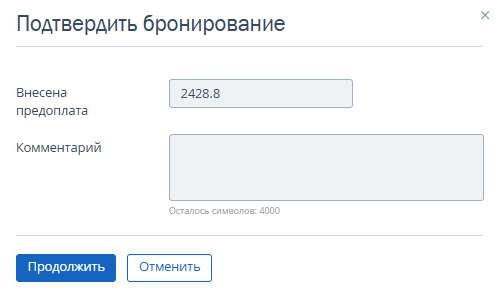 Укажите размер внесенной предоплаты и нажмите «Продолжить».