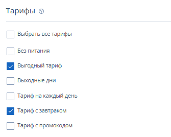 4. В блоке «Тарифы» отметьте тарифы, которые будут доступны по безналичному способу оплаты.
