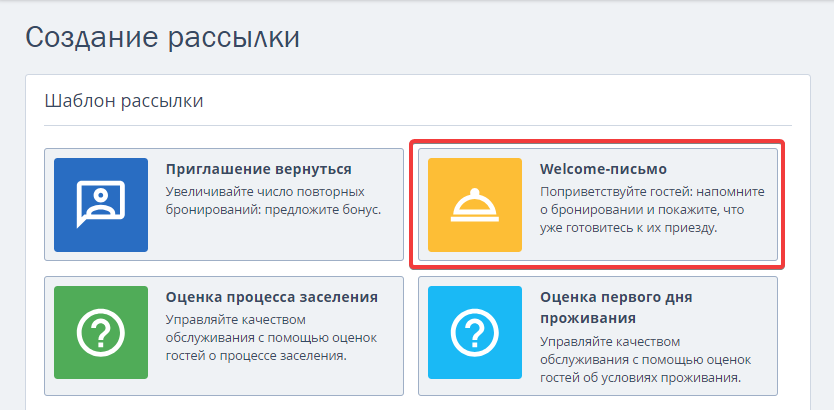 1. На странице «Рассылки» нажмите на необходимую рассылку в блоке «Создание рассылок по пути гостя».