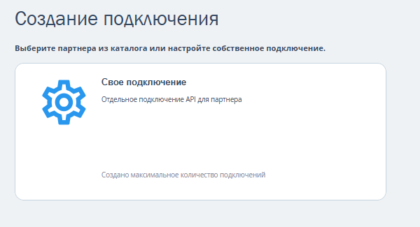 Обратите внимание. В личном кабинете TravelLine вы можете создать максимум 3 подключения. После этого на странице «Создание подключения» в карточке «Свое подключение» вы увидите сообщение, что создано максимальное количество подключений.
