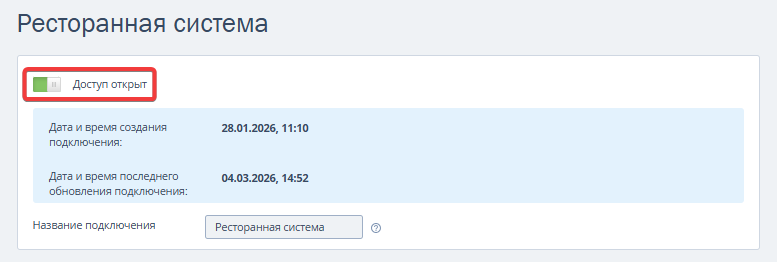 Закрыть и открыть доступ можно с помощью переключателя на странице подключения: