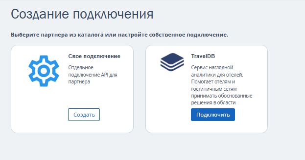 Как создать подключение из каталога читайте в статье «Каталог интеграций в личном кабинете TravelLine».