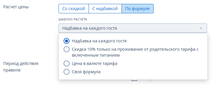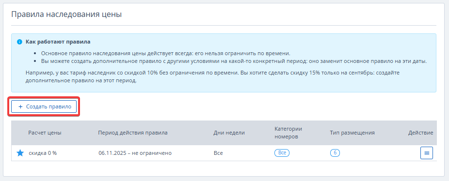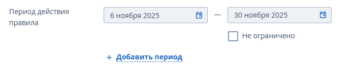 Обратите внимание. При создании дополнительного правила дата его создания проставляется как дата начала периода действия.