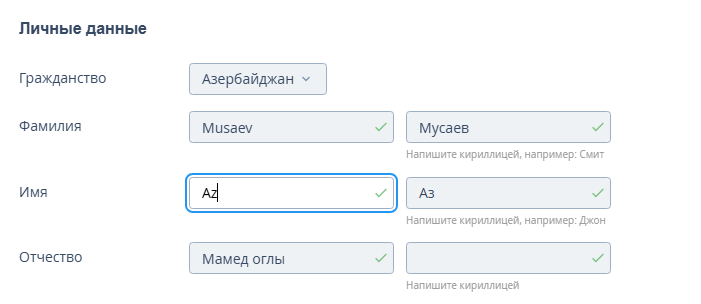ФИО иностранных гостей нужно заполнять латиницей и кириллицей. Поля для кириллицы появятся, если указано иностранное гражданство или ФИО введено латиницей.