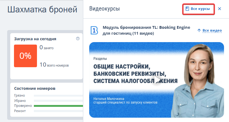 По кнопке «Все курсы» вы можете перейти на платформу обучения TravelLine.