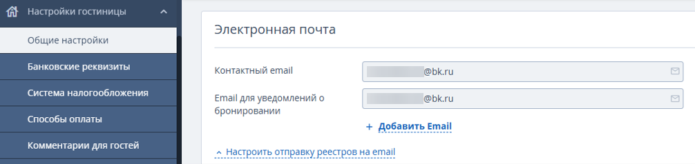 Письмо будет отправлено на электронную почту для уведомлений о бронировании, указанный в разделе «Настройки гостиницы» → «Общие настройки».