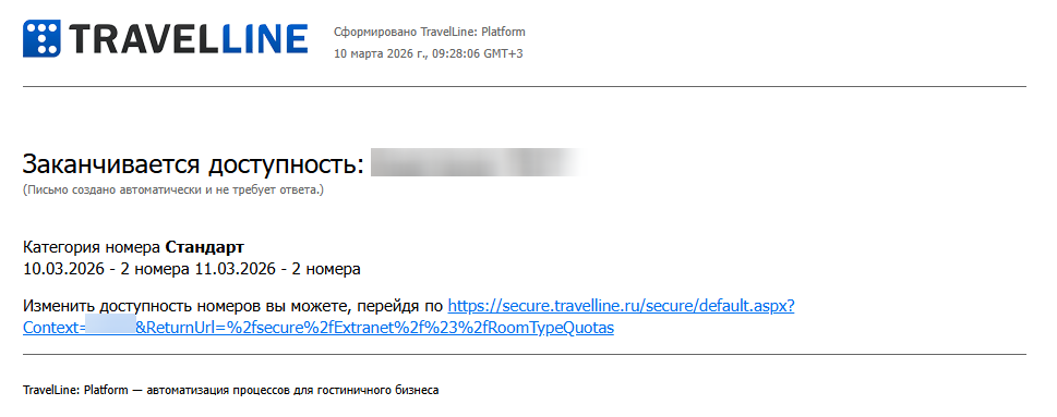Возможность получать уведомления при оставшихся N свободных номеров можно подключить по запросу в техническую поддержку TravelLine на support@travelline.ru.