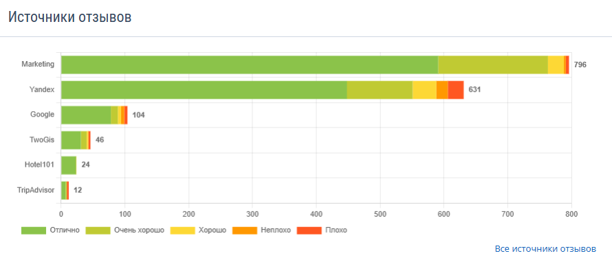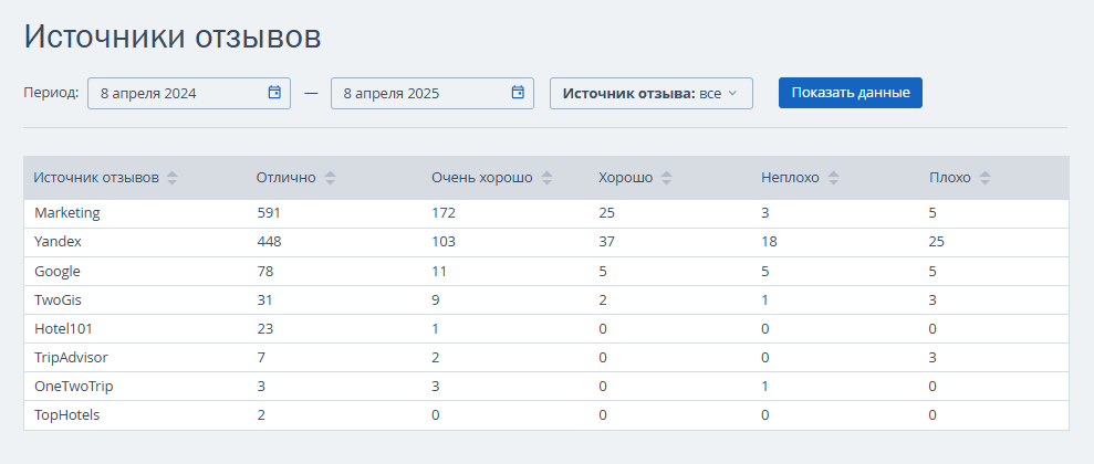 Если нажать на ссылку «Все источники отзывов», данные будут показаны в виде таблицы.