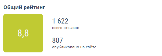 Блок показывает общий рейтинг средства размещения на основе отзывов из указанных источников.