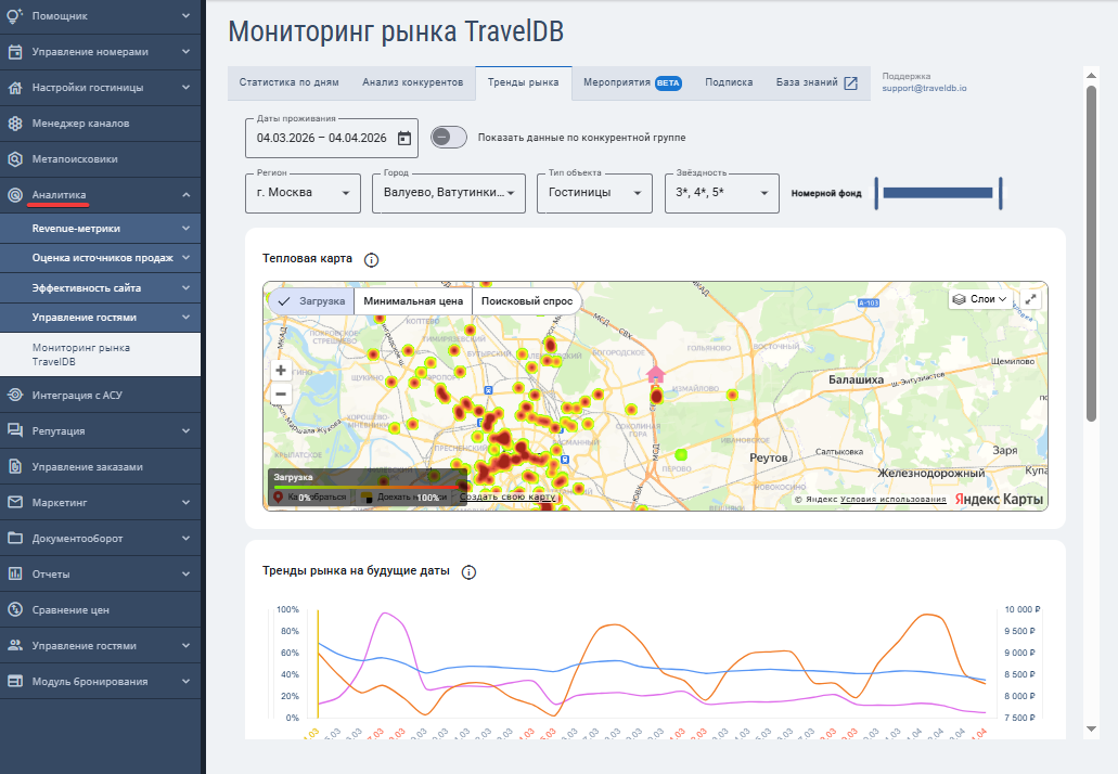 Travel Data Base (TravelDB) — сервис наглядной аналитики, который собирает данные с официальных сайтов, поисковых систем и каналов продаж по более чем 14000 средств размещения в России.