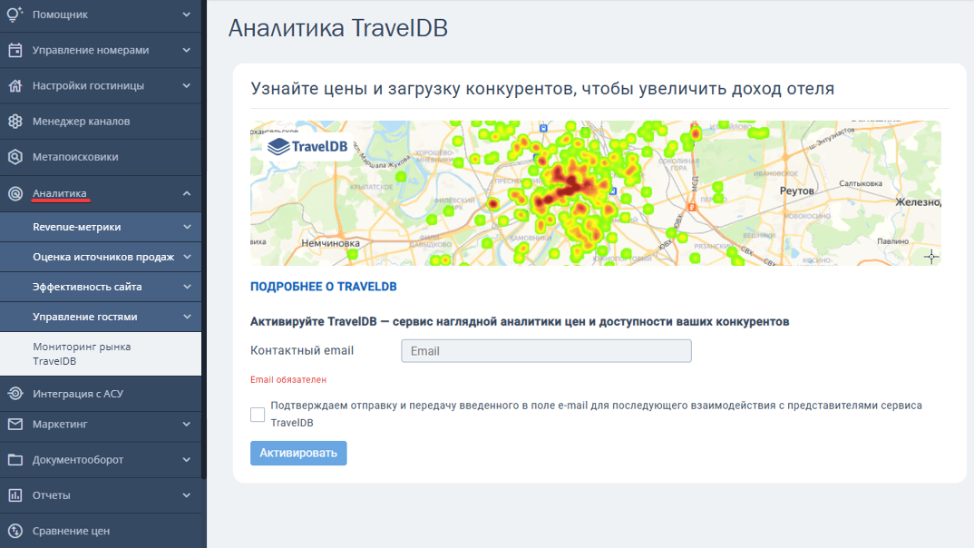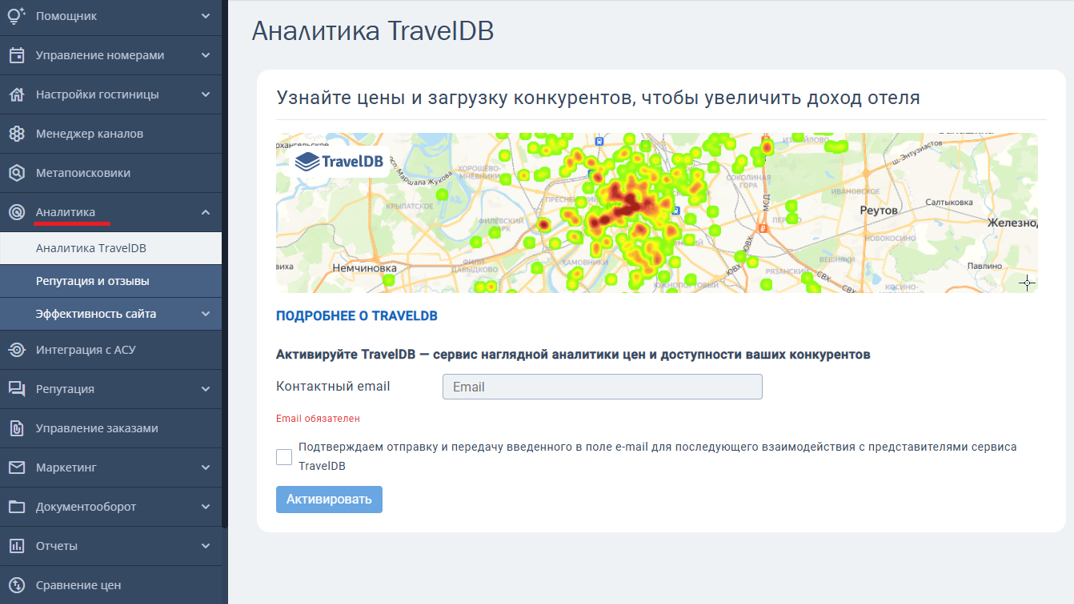 После активации в личном кабинете TravelLine отобразятся данные из сервиса TravelDB.
