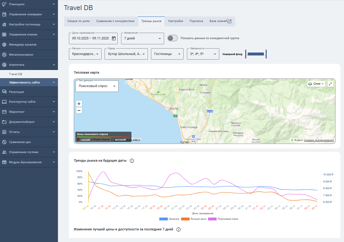 TravelDB позволяет анализировать загрузку, цены и доступность ваших конкурентов. Благодаря интеграции вы можете работать с сервисом в личном кабинете TravelLine.