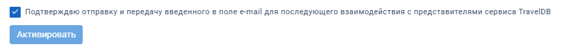 2. Поставьте галочку, чтобы подтвердить согласие на передачу необходимых данных из личного кабинета TravelLine в сервис TravelDB.