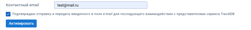 1. В разделе TravelDB отправьте заявку на подключение. Укажите email сотрудника вашей компании, с которым можно связаться для заключения договора.