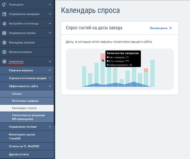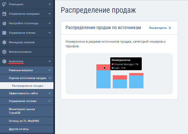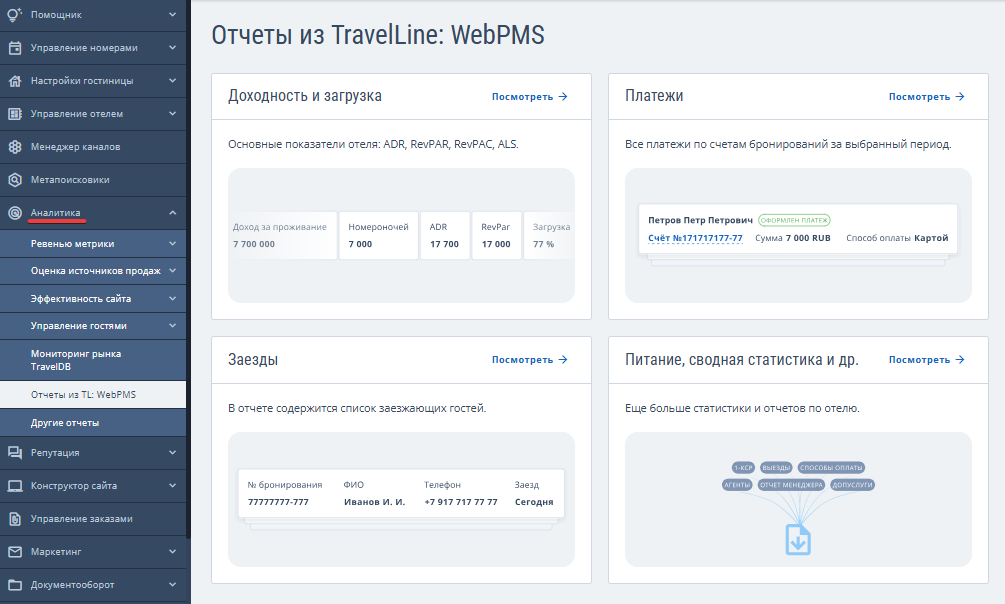 TL: Аналитика — это компонент Платформы TravelLine, предназначенный для анализа работы средства размещения. В нем собраны различные отчеты и графики, которые помогают отельеру отслеживать ключевые показатели.