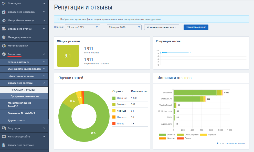 В личном кабинете TravelLine доступна обновленная версия раздела «Аналитика», которая заменяет прежнюю версию. Используйте обновленную TL: Аналитику для более удобного анализа показателей. При необходимости можно обратиться к прежней версии для просмотра показателей за прошлый период.
