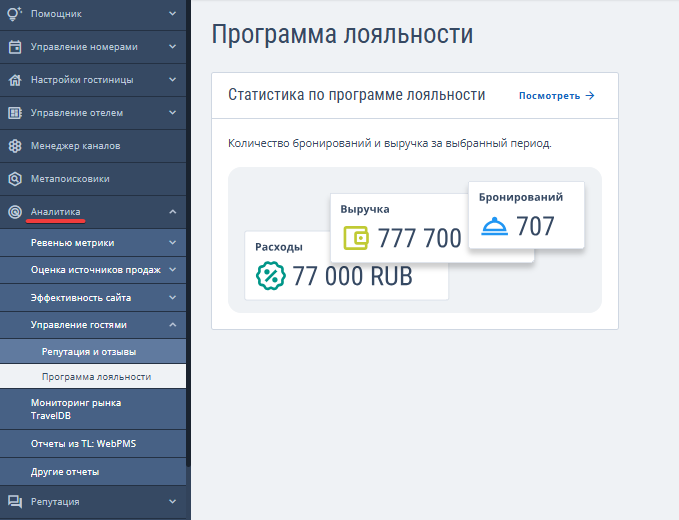 Также из этого раздела по кнопку «Посмотреть» можно перейти в отчет программы лояльности.