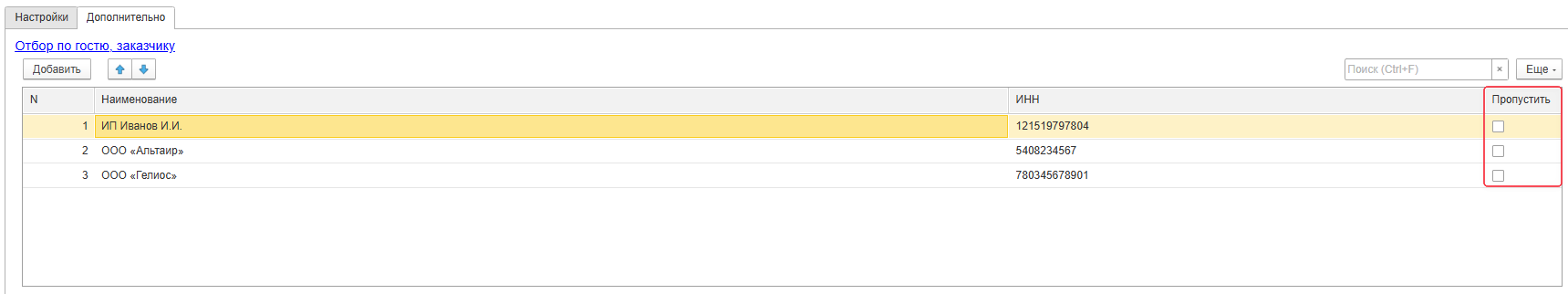 Если поставить галочку «Пропустить», документы начислений по указанным контрагентам не будут загружаться в 1С.
