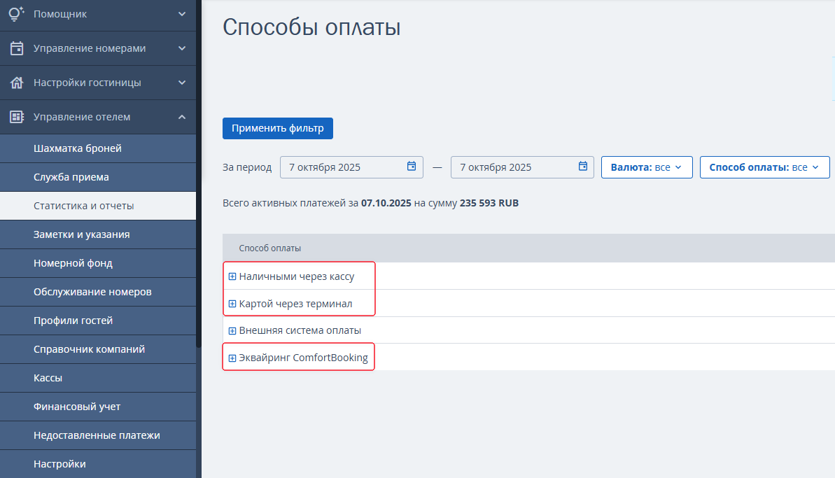 Чтобы использовать эту опцию, необходимо скопировать способы оплаты из TL: WebPMS («Управление отелем» → «Статистика и отчеты» → «Способы оплаты») и добавить их в поле «Настройки по способам оплаты» в 1С.