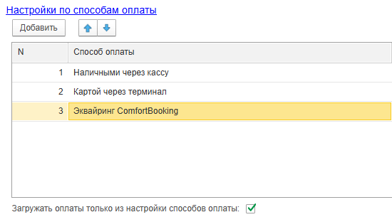 Поставьте галочку «Загружать оплаты только из настройки способов оплаты», чтобы в 1С загружались только платежи с указанными способами оплаты. Если не поставить галочку, будут загружены все платежи.